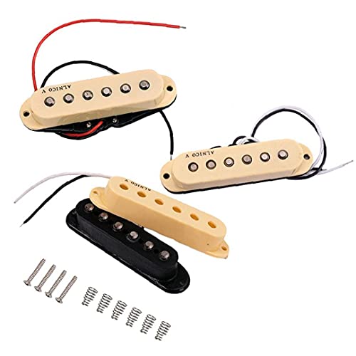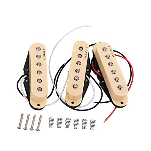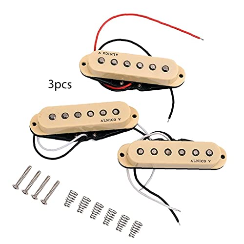 BeschrijvingHals/midden/brug single coil pickups set voor elektrische gitaar. Omgekeerde wond/omgekeerde polariteit middelste pick-up annuleert brom in pickup-switch posities twee en vier. Alnico 5 magneten voegen meer focus en verbeterde dynamiek toe. Over-wound bridge pickup produceert strakke, heldere bas en maximale output.Ongelooflijke focus en dynamiek. Middle pickup is reverse wound/reverse polariteit, bridge pickup levert een humcancelling featureFeaturesGuitar pickups-Kleur: Khaki. -Materiaal: Alnico 5 magneten, vintage stijl doek draad, paraffine, geëmailleerde koperdraad, enkele kern koperdraad. -Grootte: 3.3×0.66 inch.Neck pickup R: 8.7KMiddle pickup R: 9.1KBridge pickup R: 9.9.9.9.1KBridge pickup R: 9.9.9.9K3* Alleenstaand Coil Gitaar Pickups4*Schroeven6*Veren
