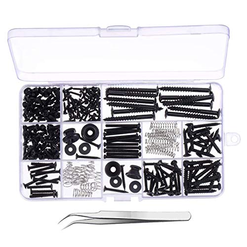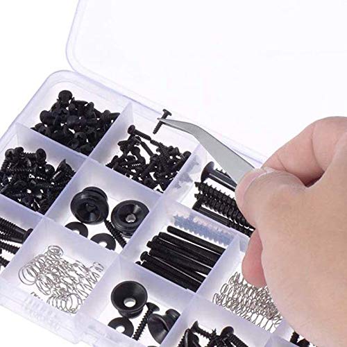 – De hele kit bevat 9 soorten schroeven en 2 soorten gitaarriemtoetsen, een pincet voor elektrische gitaar, in totaal 254 stuks, alle winkel in een plastic doos, comfortabel te dragen en vast te houden.