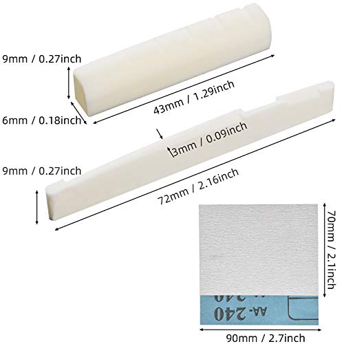 Specification: IRICH Duurzame beender-gitaarbrugset, zadel moer moer vervanging met 2 stuks schuurpapier voor 6 string klassieke folk…