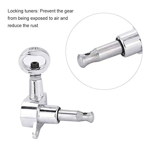 Vergrendeltuners voorkomen dat de versnelling wordt blootgesteld aan lucht en verminderen de roest, wat duurzamer is. Wordt geleverd met schroeven, bussen en hulzen voor eenvoudige montage. De afgestemde gitaarsnaar raakt niet gemakkelijk los. Met deze tuningpinnen kun je gitaarsnaren snel en nauwkeurig afstemmen. Hoge kwaliteit interne versnelling, het is effectief om schroefslippen te voorkomen. Geschikt voor akoestische en elektrische gitaren van normale grootte.