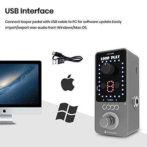 MeloAuido Loopers kunnen de muziek importeren/exporteren naar/naar Windows/Mac OS PC eenvoudig met USB voor het uploaden/downloaden van wav lus bestanden, het aansluiten van extern pedaal, Windows-systeem hoeft geen extra software en stuurprogramma’s te installeren.