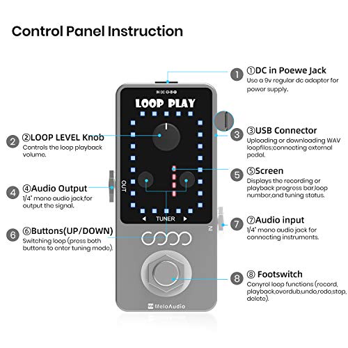 Specification: MeloAudio Gitaar Looper Pedaal Loop Effecten 10 Minuten Looping Time Loop Station 9 Loops 40 minuten Record Time met USB…